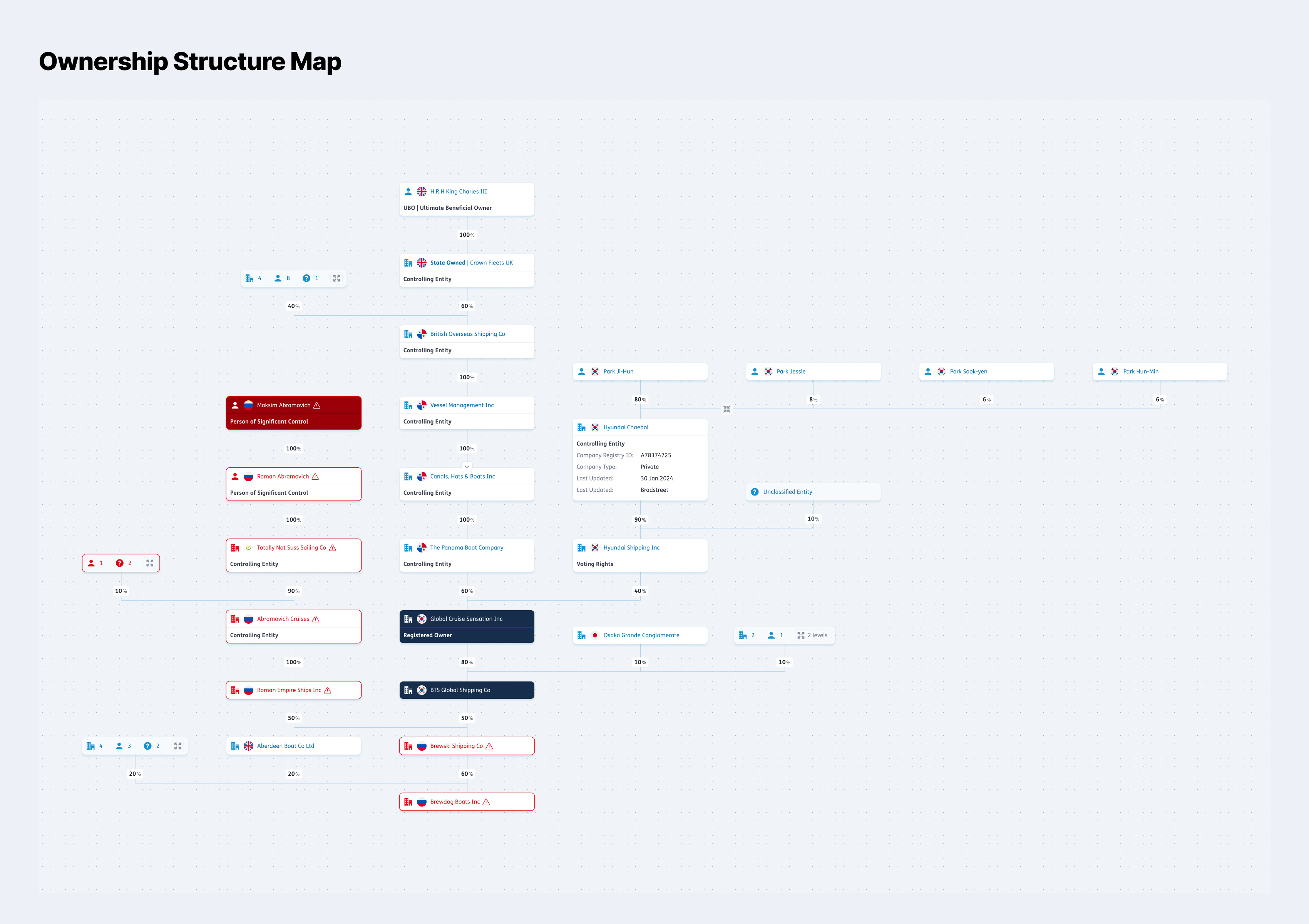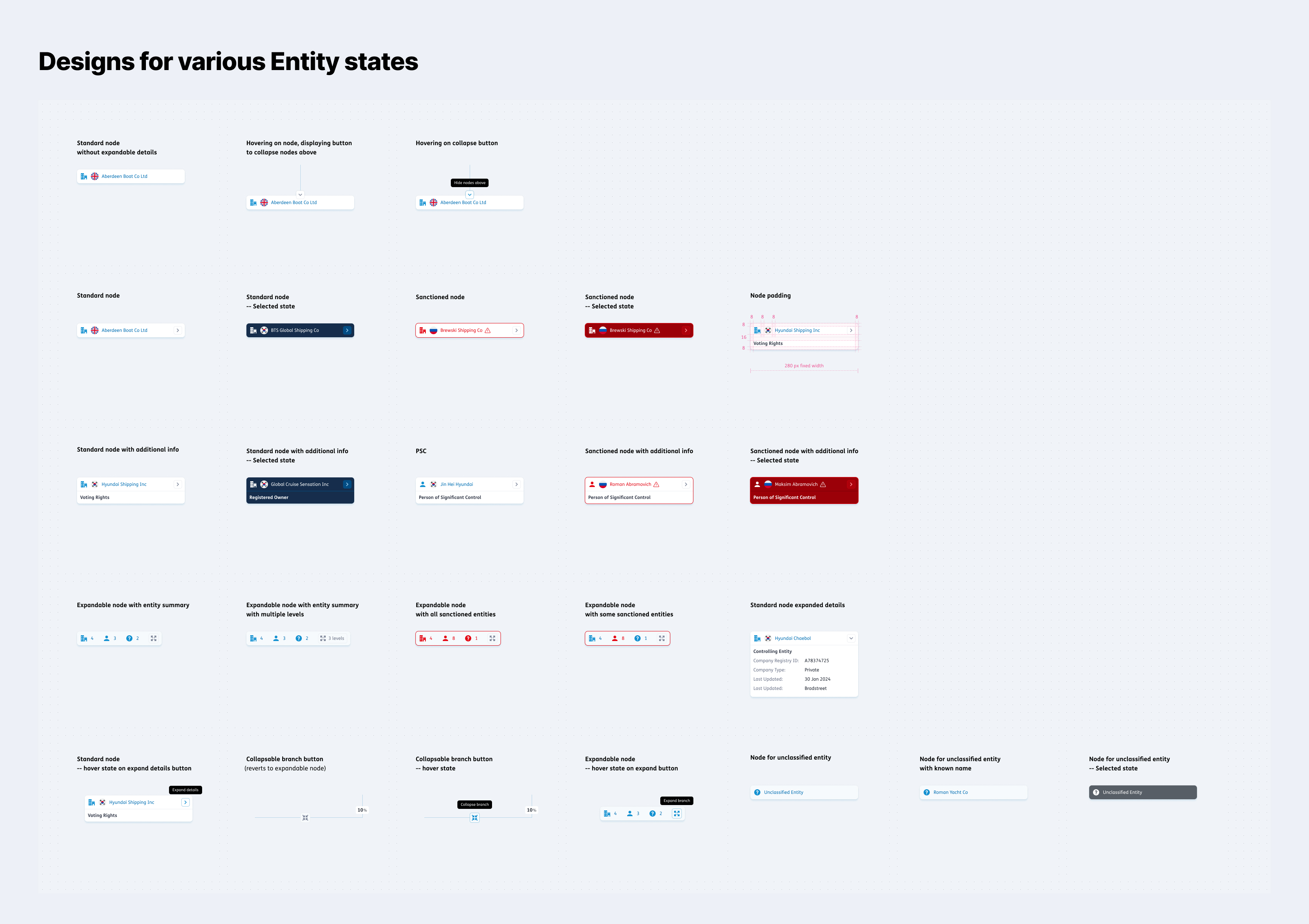 From a UX and Product Design perspective, this was a bit different to most design work, as just creating designs in Figma wouldn't cut it - we needed to make sure everything handled, moved and felt right, and could cope with a variety of different data and use cases, for example allowing users to easily navigate and understand company ownership structures which may have hundreds of entities.