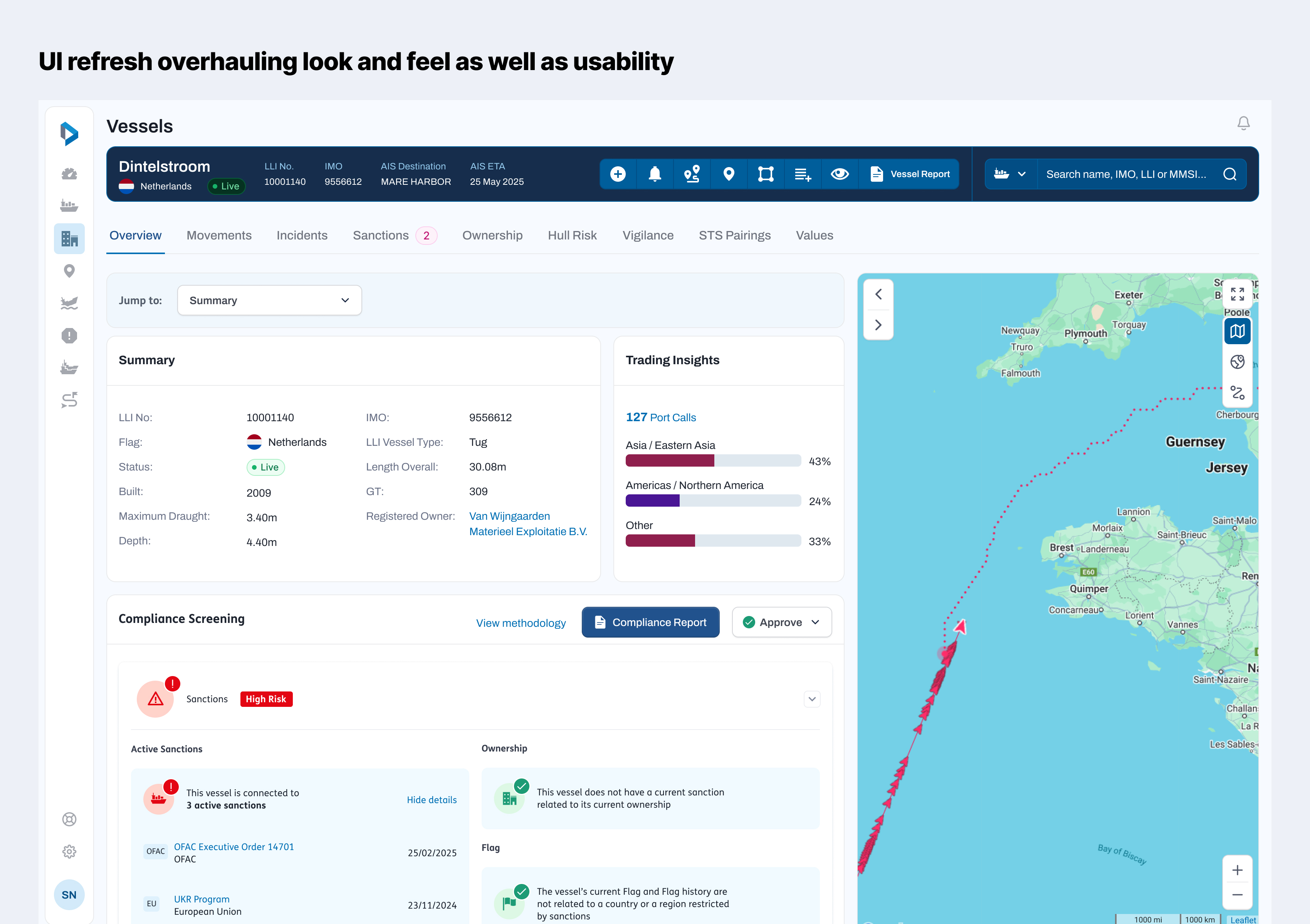 Seasearcher is Lloyd's List Intelligence's flagship product, a global intelligence platform that provides real-time data and insights on the world's shipping and maritime industry, packed with a range of features above and beyond vessel tracking - such as cargo data, vessel and company ownership risks, emissions data, legal sanctions, trade risk and more. As such the platform is packed with features all aimed at a wide variety of use cases, from government intelligence and insurance, to commodity traders, banks and many others.