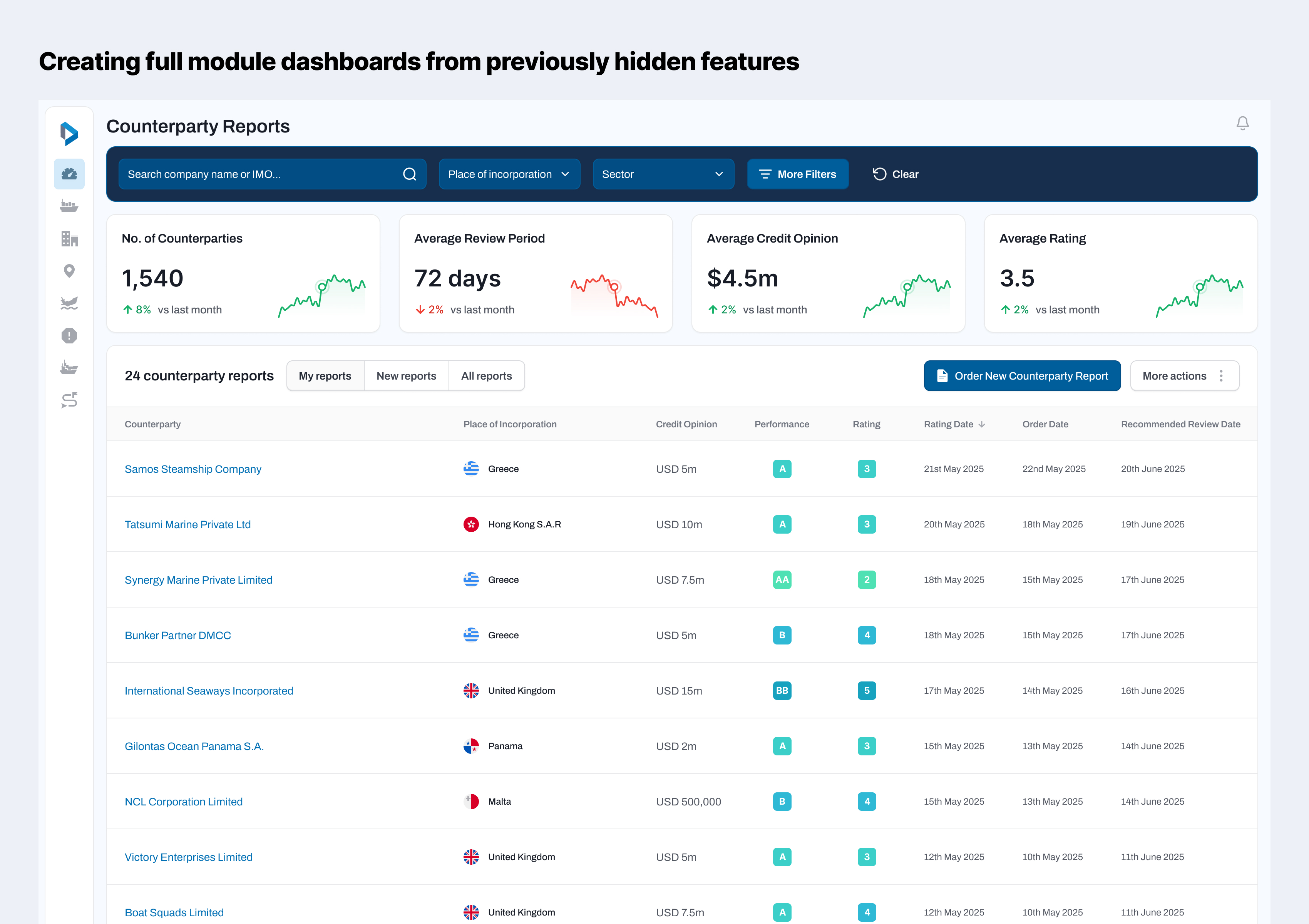 I led the UX and visual design overhaul of the platform to coincide with a repackaging of the platform that would introduce new workflow-oriented Modules to users. Aside from modernising the look and feel and aligning more closely with the brand, key aims of the redesign were to improve usability, accessibility, and overall user experience, as well introducing more user personalisation, allowing users to customise their dashboard and workflows to their needs, creating dramatically different experiences depending on the user's role and needs.