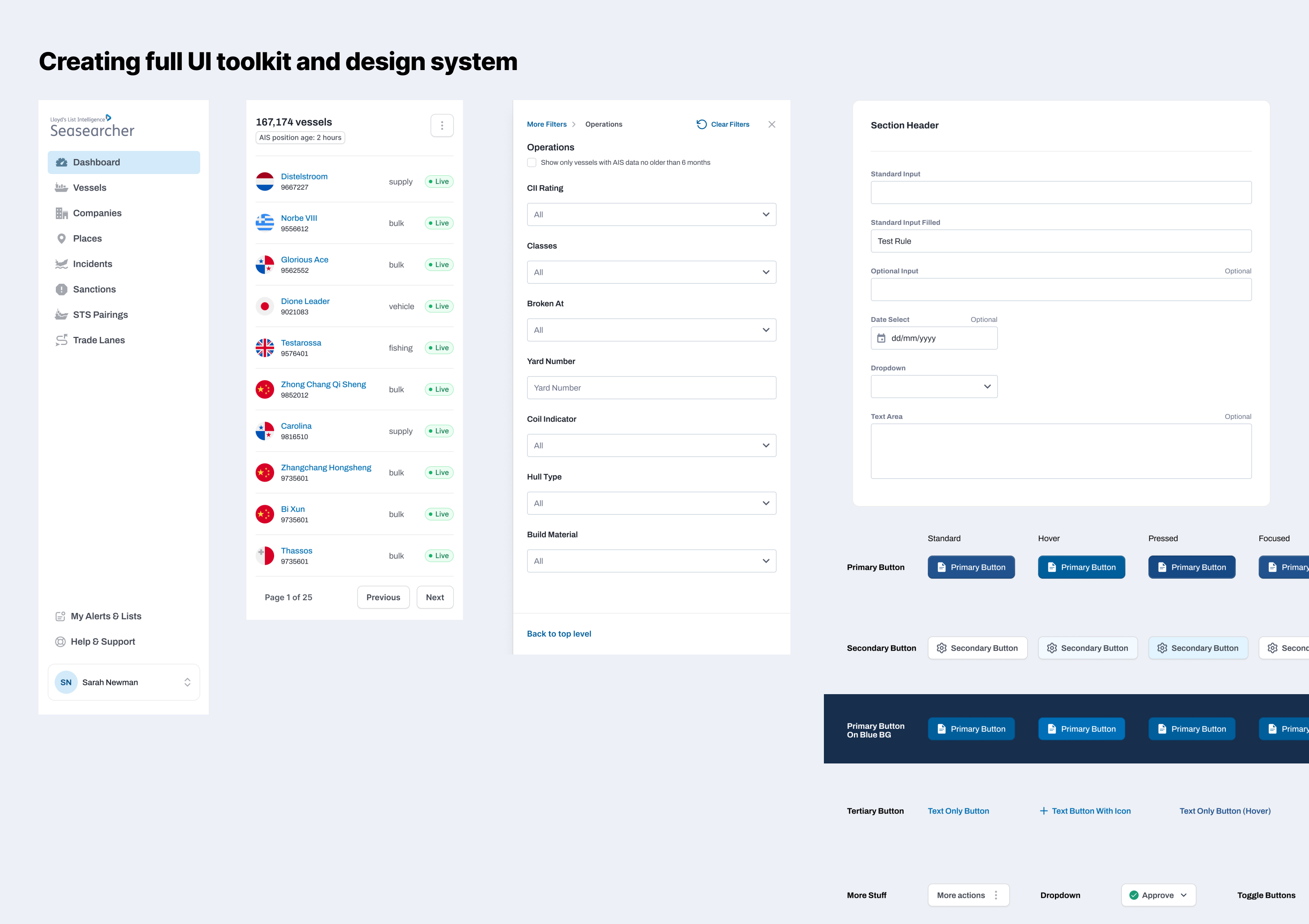 The platform contains a huge amount of data, so making things clear and legible - allowing access to everything whilst not immediately overwhelming users - was also an important consideration. Designing and developing the changes was an ongoing, iterative process, so the creation of a UI toolkit and design system was a key part of the process, helping standardise design across the various modules and accelerate future designs and development.